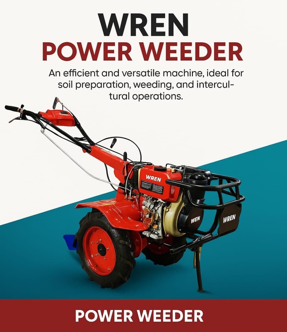 WREN Agriculture Power Weeder Model is a robust and efficient machine designed to simplify farming tasks such as weeding, tilling, and soil preparation. Built for durability and ease of use, this model is ideal for small to medium-sized farms and horticultural applications. Its powerful engine and ergonomic design ensure effective performance in various soil conditions.