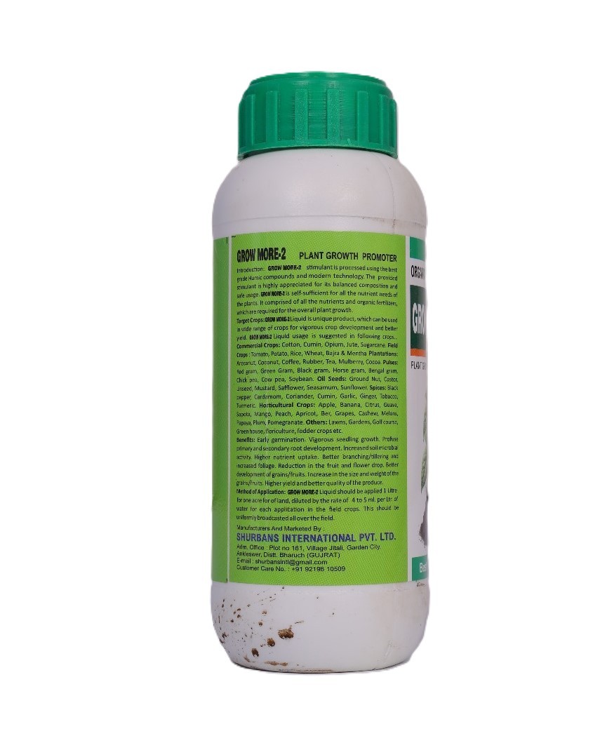 - Grow More 2 is a premium organic and potassium humic manure made primarily from potassium humate, a water-soluble organic fertilizer derived from leonardite, a rich natural source of humic substances. This advanced liquid organic manure improves soil health, plant growth, and nutrient absorption, making it an essential input for sustainable farming.
