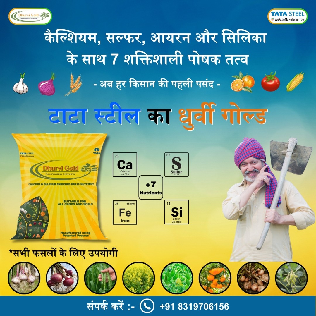 Dhurvi Gold Fertilizer produced by Tata Steel is a leading agricultural product designed to increase crop yields and soil health. This fertilizer from Tata Steel is rich in essential micronutrients that are vital for plant growth.
