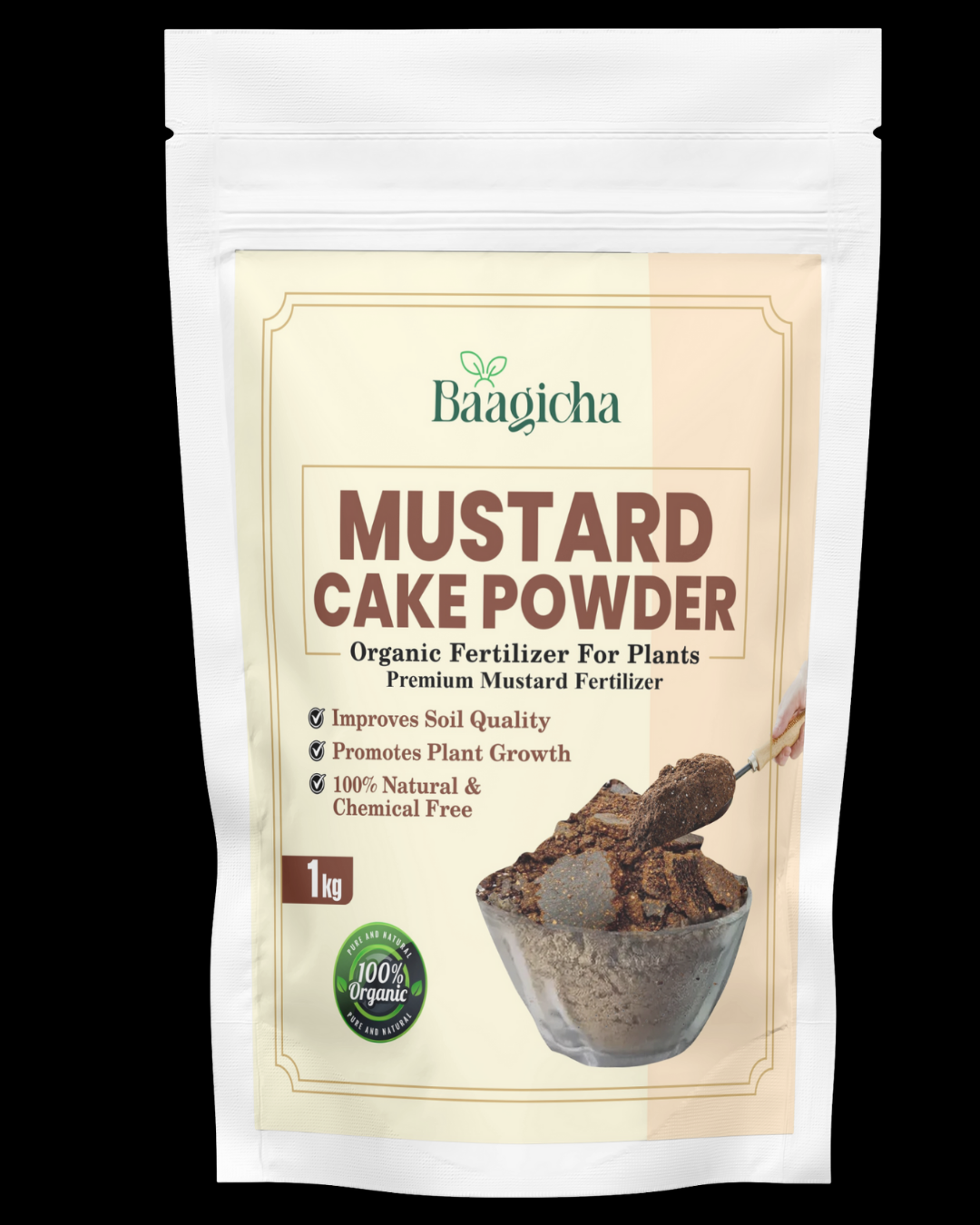 Upgrade your garden with Baagicha Premium Mustard Cake Powder, a 100% natural and organic fertilizer trusted by gardeners for healthy, vibrant plants. Packed with proteins, natural NPK (Nitrogen, Phosphorus, Potassium) and essential micronutrients, it is the perfect plant food for vegetables, flowers, fruits, and indoor plants. How It’s Made? Made from 100% cold-pressed mustard seeds, Baagicha Mustard Cake Powder is produced after oil extraction, then finely ground to retain proteins and nutrients. This ensures a premium, slow-release organic fertilizer that keeps feeding plants for weeks. Why Choose Baagicha Premium Mustard Cake Powder? 1. Organic NPK Fertilizer – complete plant food with balanced nutrients 2. Protein-Rich Plant Growth Booster – enhances leaf, root & stem strength 3. Natural Pest Resistance – mustard oils keep soil healthy & pest-free 4. Improves Soil Quality – boosts microbial activity & fertility naturally 5. Eco-Friendly & Chemical-Free – safe for soil, pets, and people