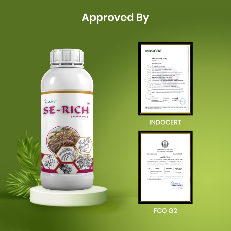 Se-Rich is a premium foliar spray made from a carefully balanced blend of algae species red, brown, green, and blue-green. This liquid nutrient formula delivers essential micronutrients and growth-stimulating compounds directly through the leaves. Ideal for boosting plant health when soil is low in fertility or during periods of stress, Se‑Rich revitalizes vegetation and supports faster development.