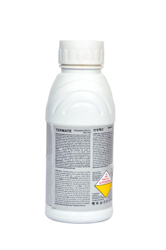 - TERMATE is a powerful broad-spectrum insecticide and termiticide formulated with Chlorpyriphos 20% EC. Belonging to the organophosphate group, it provides effective control against a wide range of sucking, chewing, and soil-dwelling pests. Its Emulsifiable Concentrate (EC) formulation ensures easy mixing with water for versatile applications in agriculture, horticulture, and termite control.